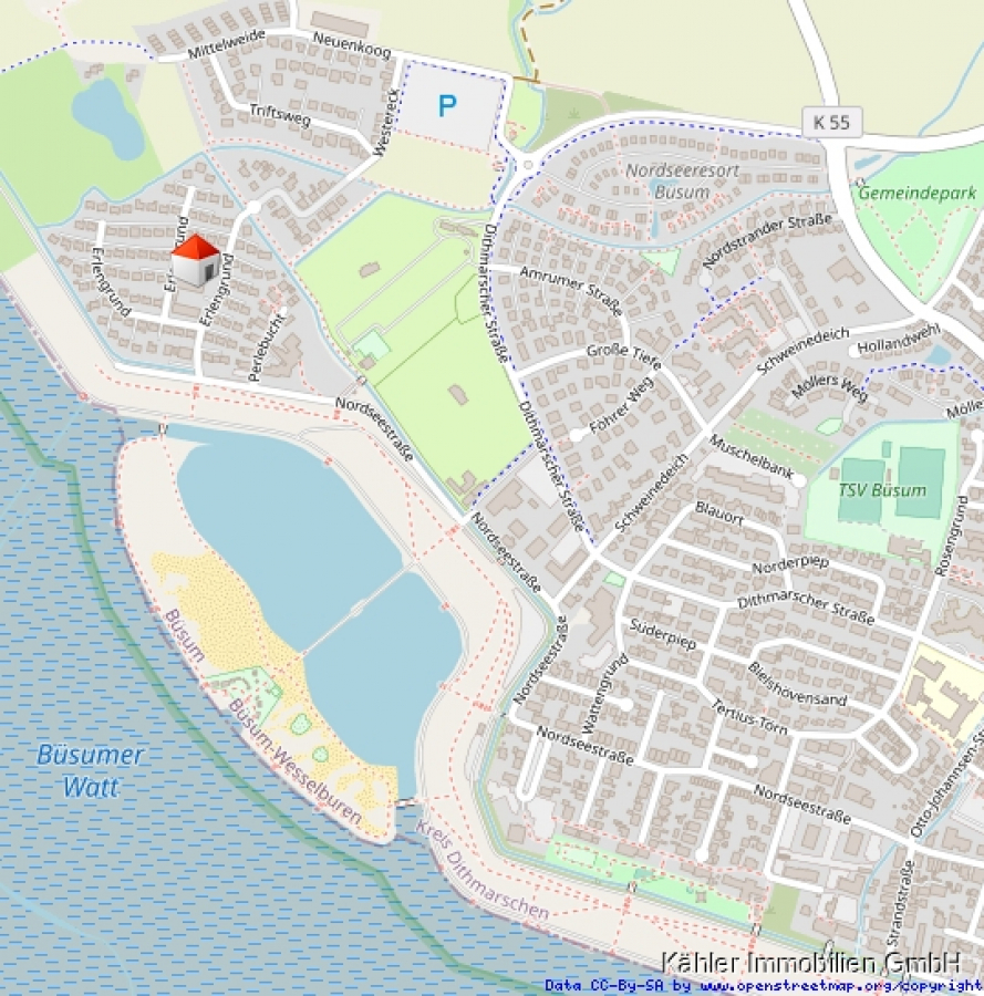 Mit der Kleinbahn haben Sie die Möglichkeit vom Erlengrund in das Zentrum von Büsum zu gelangen. Hier finden Sie diverse Einkaufsmöglichkeiten, Restaurants und Cafés ebenso das modernisierte Schwimmbad "Meerzeit", den Hafen und den Hauptstrand.