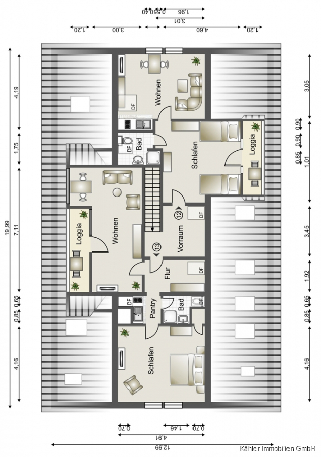 •EG: 7 Einheiten, DG: 5 Einheiten, Spitzboden: 2 Einheiten