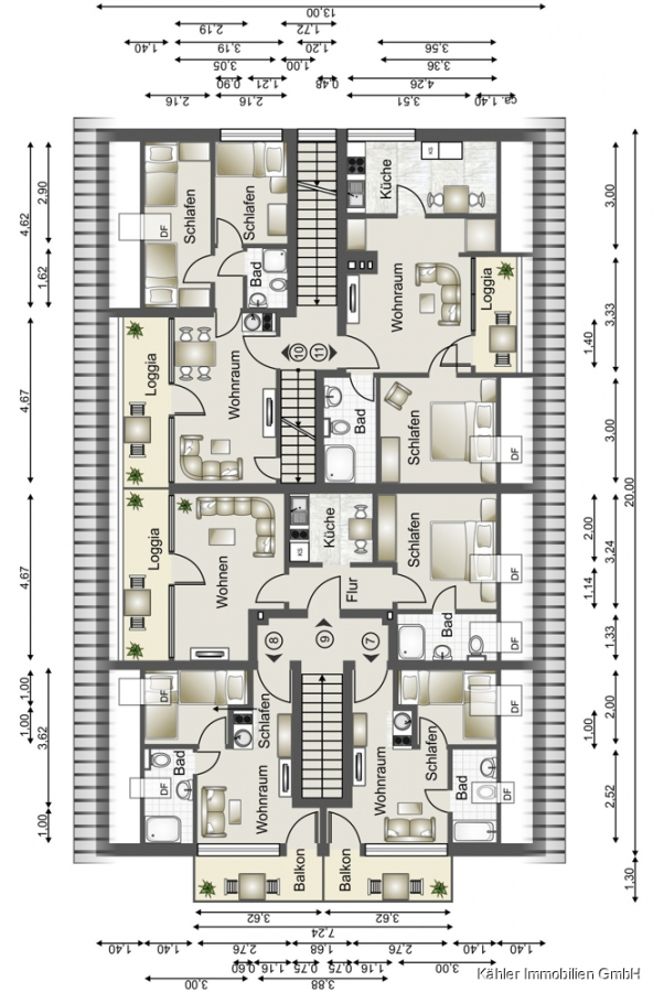 •Jede Wohnung mit Balkon, Loggia oder Terrasse