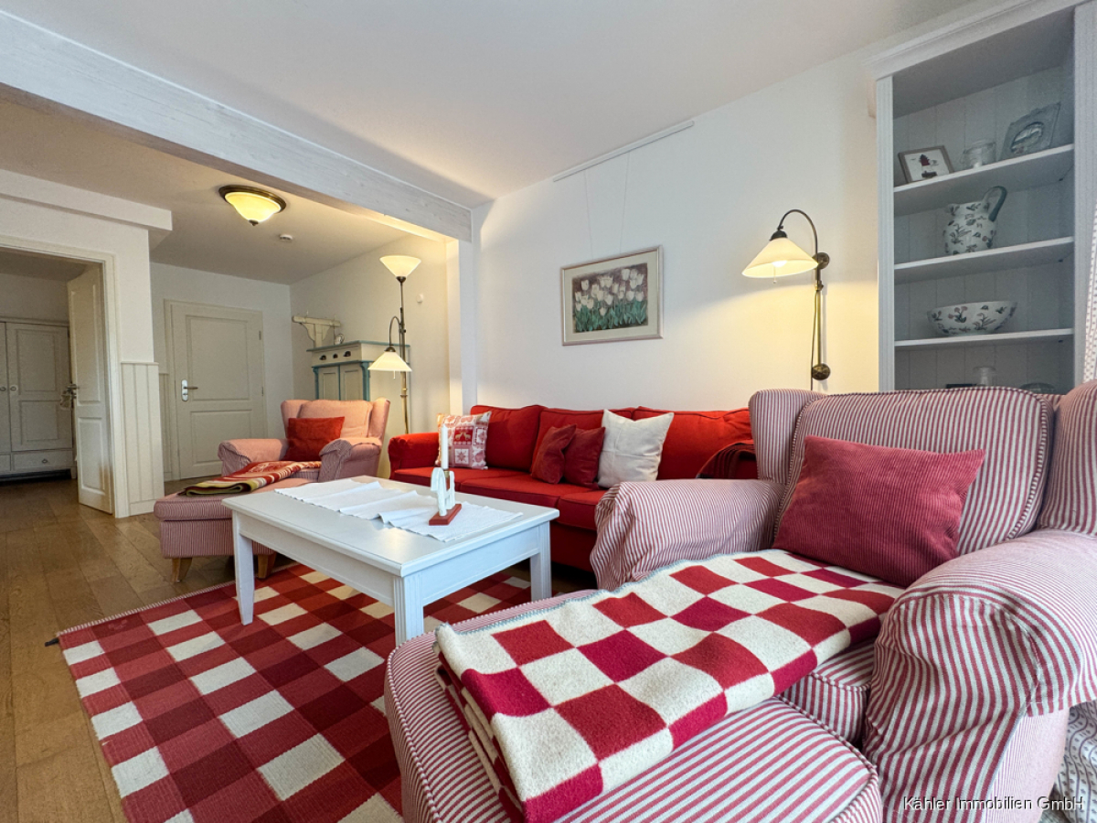 Diese gemütlich, im Schwedenstil eingerichtete ca. 52,8 m² große 2-Zimmer-Erdgeschosswohnung befindet sich in einem Schwedenhaus in Büsum.